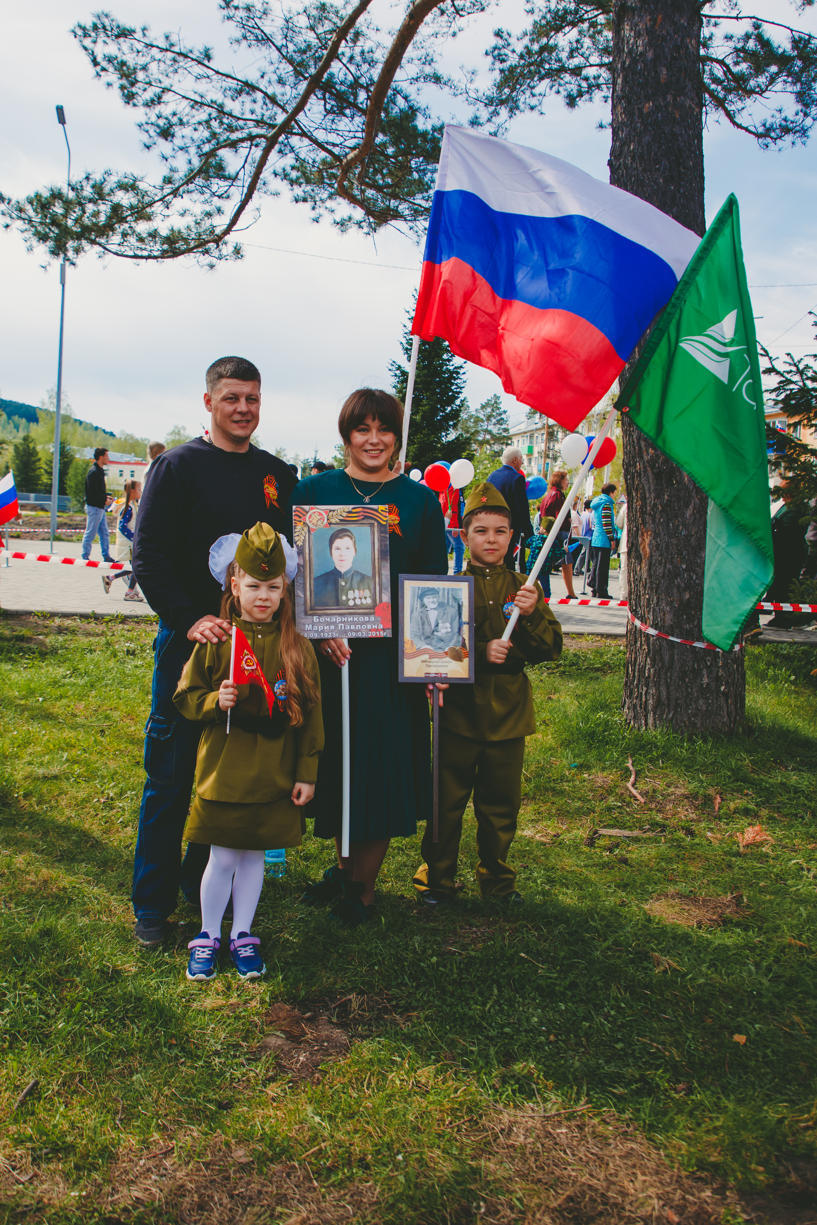 «На этот праздник я пошла вместе с семьей: мужем и тремя детьми, — говорит Алевтина Васильева, главный специалист по гражданской обороне, чрезвычайным ситуациям и пожарной безопасности «Разреза Тайлепский». – Наш долг – чтить память тех, кто подарил нам свободу, учить детей уважению и благодарности к настоящим героям, которые защитили нас от фашизма. Мы в этот день вышли на площадь с фотографиями наших бабушки и дедушки – Марии Павловной Бочарниковой и Семена Григорьевича Зяблицкого – которые внесли свой вклад в Победу».